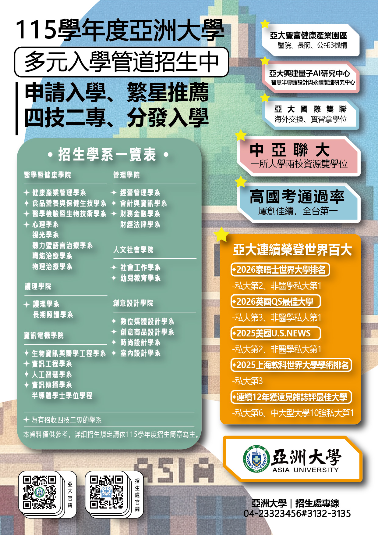 2026亞洲大學院系特色成果展暨大學申請入學落點分析講座